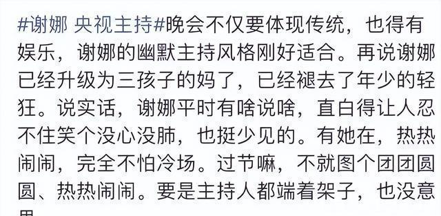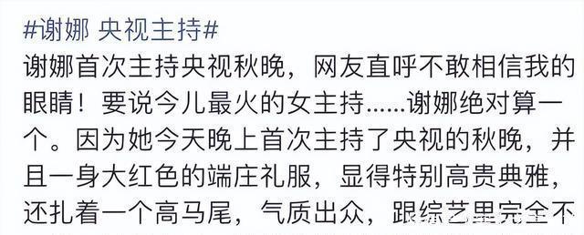 早在央视中秋晚会官宣有谢娜主持时,网上就掀起了一波吐槽,大家都不明白,一个综艺主持人怎么能登上央视舞台。       还有人说这次晚会何炅没有现身,就是他给谢娜让了位置,她就是靠关系才走上去的。       总之,翻看网上的评论,大家是一致的不看好,更有一些看戏不怕台高的人,就只盼望着谢娜在晚会上出糗。       然而,结果让很多人失望了,       这一次,登上央视中秋晚会的谢娜,终于打破了人们对她的“偏见”。       10񀙖日晚,央视中秋晚会准时播出,一开场,五位主持人率先作出了自我介绍,鲁健、孟盛楠、任鲁豫不愧是央视老牌主持,开口就气场全开。       就连来自台北的侯佩岑,说话也是字正腔圆,比平时多了几分优雅和沉稳,而谢娜作为最后压轴,她却选择了不一样的开场方式。       一身红色改良旗袍显得格外突出,像极了火红辣椒,充满了热情,而在介绍中,她还用方言说出了“德阳幺妹谢娜”,那一刻,亲切感瞬间爆棚。       虽然只是短短的一句自我介绍,可明显感觉谢娜变了,这次彻底收敛了性子,穿着大方得体,高马尾造型精神干练,丝毫不输身边的专业主持人。       而在整场晚会中,谢娜表现也非常自然从容,介绍非遗、衔接节目,还有与李斯丹妮的合唱,真正做到了零出错,没有给任何人留下把柄。       唯一能看得出的地方,就是她和任鲁豫在船上的对话,很明显她有些接不住话,也有些许紧张,但谢娜还是保持着镇定,以最有姿态完成了任务。       看到谢娜的这次表现,你有没有“失望”?这一次,她的确是又上了热搜,但翻看评论内容,基本上都是好评和点赞。       在很多人的印象中,谢娜身上一直被贴着“疯癫”、“作秀”、“综艺咖”的标签,甚至有时候还频繁出错,搞的场面很是尴尬,这些年里,谢娜甩都甩不掉。       以至于每次谢娜主持节目后,都会有很多吐槽的话题,被冲上热搜,她甚至还成为了反向代表,遭遇了不少人的抵制。       可这些年里,谢娜真的变了,她不再是当年的谢娜,已经完成了蜕变。这一点从几个方面就能看出。       拿这次的央视中秋晚会来说,为何会选择谢娜是有原因的,一方面“地方+央视+港台”的主持阵容模式,是每年中秋晚会固有的。       而今年,晚会定在了四川德阳玄珠湖,谢娜作为德阳人,本身就有一定知名度,在主持中穿插四川方言,更显得接地气,完全符合主持人选要求。       其次,谢娜的性格活泼,热情奔放,给晚会增添了色彩,吸引年轻观众,打破了固有的严肃标签。       至于她的专业能力,不否认以前在主持中犯了很多错,但这一回,她也的确付出了巨大努力,此前,谢娜苦练了三个月台词,还调整了语速,尽可能的适应央视舞台。       而最大的变化,其实是谢娜这些年的经历,1998年出道,至今已经从�年,以前在湖南卫视主持节目时,她就是搞笑担当。       而后来与张杰结了婚,还生育𱄿个孩子,从小丫头到妈妈的转变,谢娜成熟了很多,尤其是在她退出《天天向上》主持舞台后,谢娜更低调了。       当一个人从台前走到台后,再经过多年的沉淀,谢娜的内心其实已经发生了变化,她早已不再是那个搞怪的小姑娘了,而是在走向更高的台阶。       所以说,谢娜真的变了,这波算是把酸民的牙都给酸掉了。